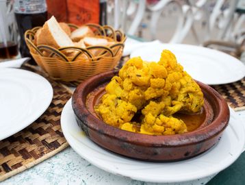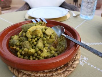 Tender Chicken simmered with Green Olives, Preserved Lemon, Garlic, Ginger, and Potatoes in a rich savoury gravy.