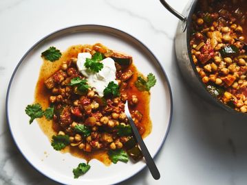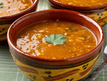 Hearty Moroccan soup with lentils, chickpeas, tomatoes & warm spices