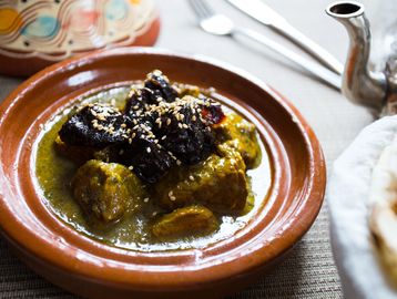 Slow cooked Lamb in a Cinnamon and Saffron sauce, finished with sweet Prunes and toasted Almonds