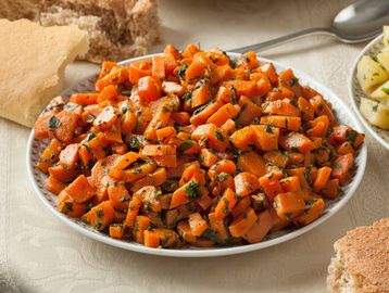 Steamed carrot with Cumin and fresh Coriander, and Chermoula dressing